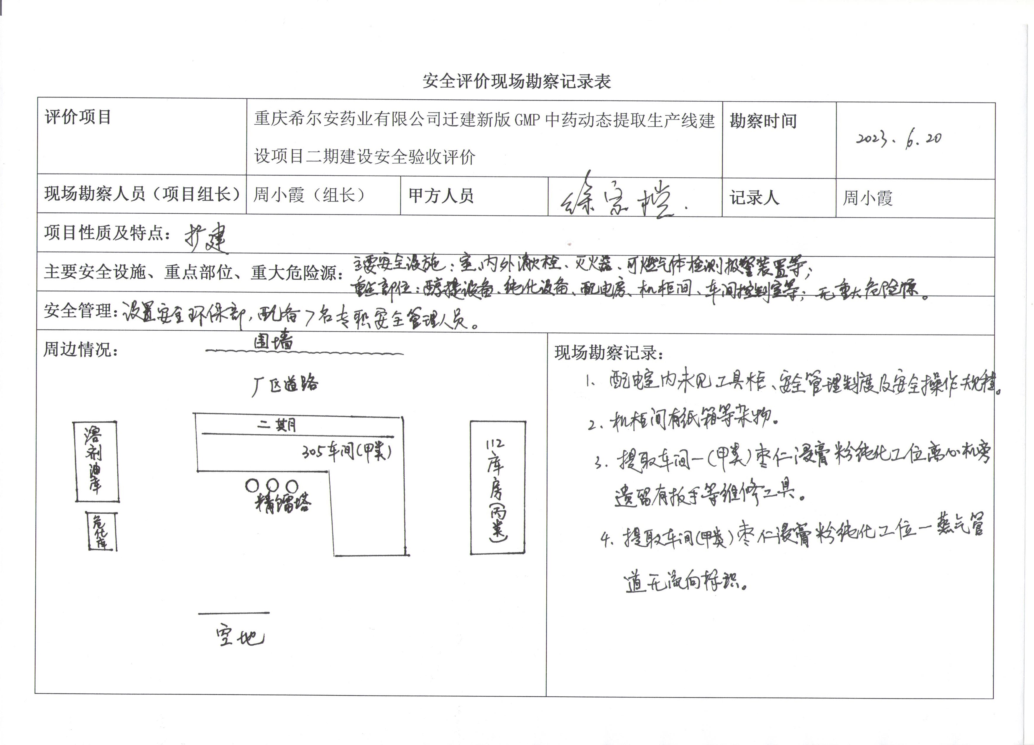 項(xiàng)目名稱 | 重慶希爾安藥業(yè)有限公司遷建新版 GMP 中藥動(dòng)態(tài)提取生產(chǎn)線建設(shè)項(xiàng)目二期建設(shè)安全驗(yàn)收評(píng)價(jià) | 合同編號(hào) | DA(渝)-PJ-20221009 | |||||