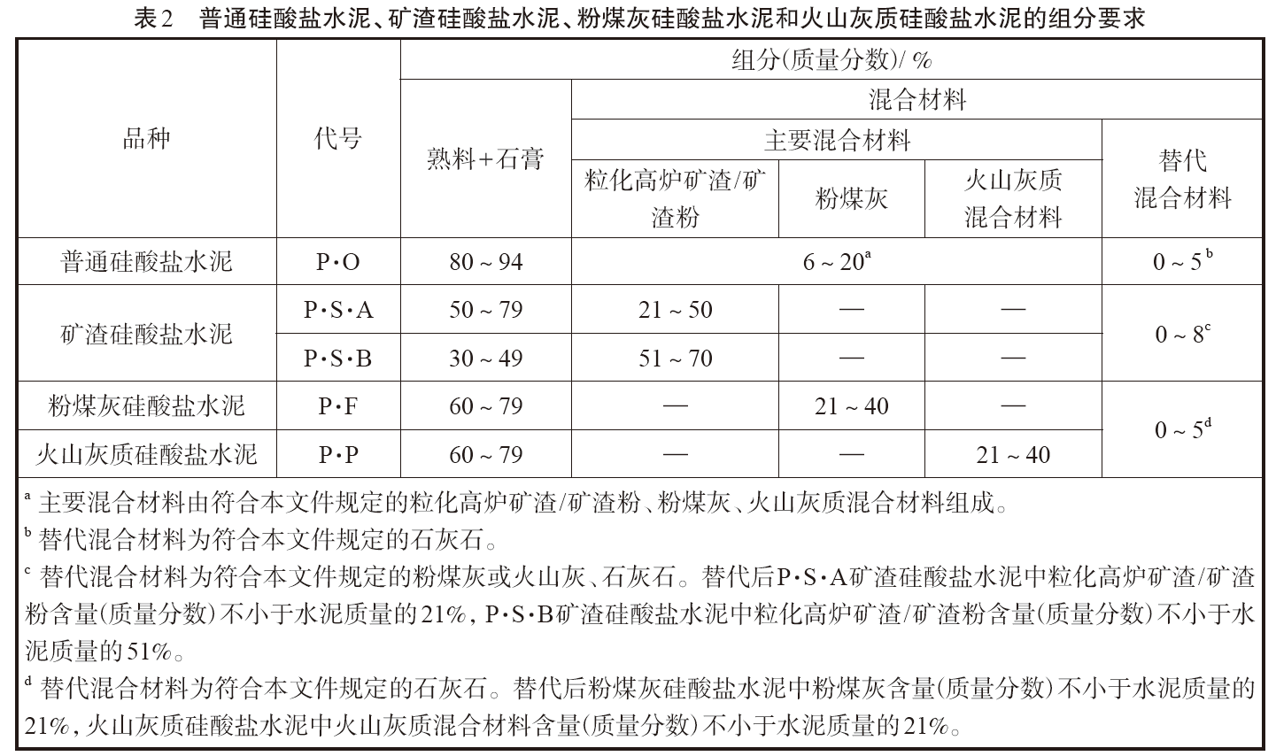 本次標(biāo)準(zhǔn)修訂,二者在組分上的最大變化是允許小于等于5%的石灰石替代主要混合材料。替代后粉煤灰硅酸鹽水泥中粉煤灰含量(質(zhì)量分?jǐn)?shù))不小于水泥質(zhì)量的21%,火山灰質(zhì)硅酸鹽水泥中火山灰質(zhì)混合材料含量(質(zhì)量分?jǐn)?shù))不小于水泥質(zhì)量的21%。具體見(jiàn)表2 中的備注d。