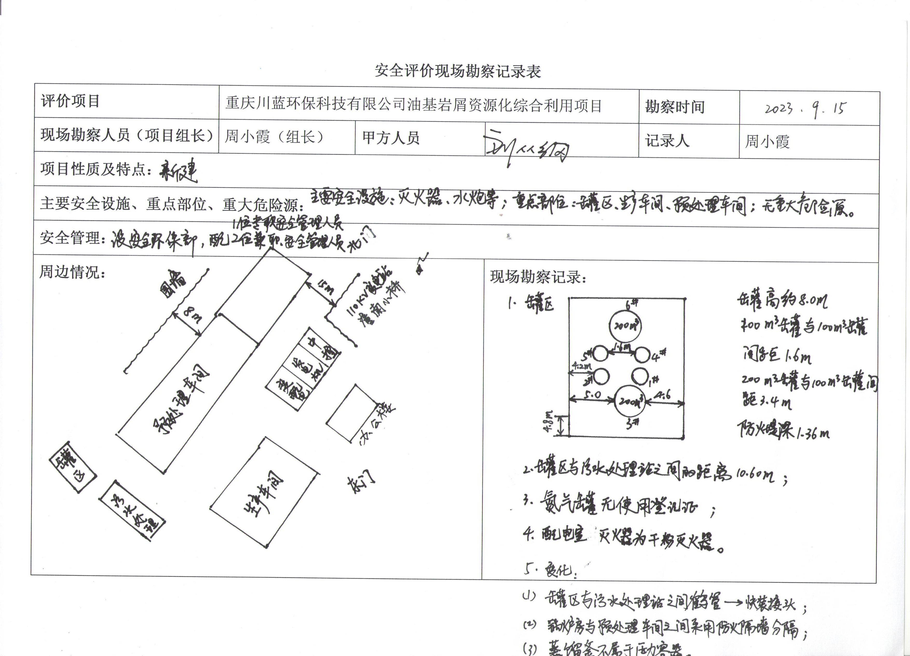 | 現(xiàn)場(chǎng)勘查情況 | 預(yù)處理車間、生產(chǎn)車間、變配電室、儲(chǔ)油間、裝卸區(qū)、儲(chǔ)罐區(qū)等安全設(shè)施和安全管理符合安全生產(chǎn)條件。 | |||||||