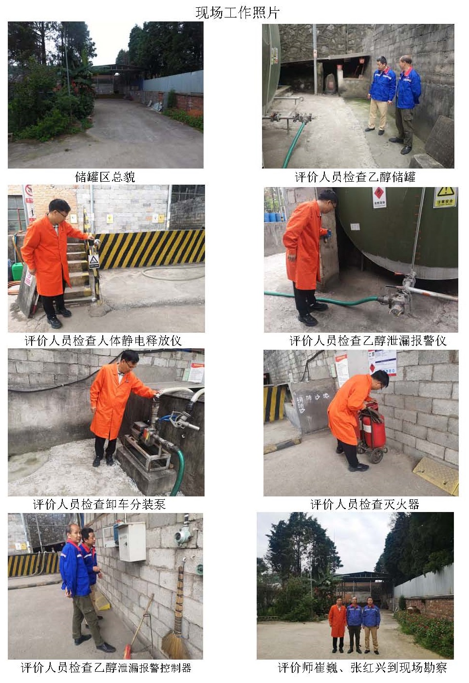現(xiàn)場勘查情況 | 無人機航拍公司及周邊平面照片,查看乙醇儲罐周邊環(huán)境,查看卸車區(qū)、罐區(qū)、液位計、分裝區(qū)現(xiàn)場情況,查看安全管理資料。 | |||||||